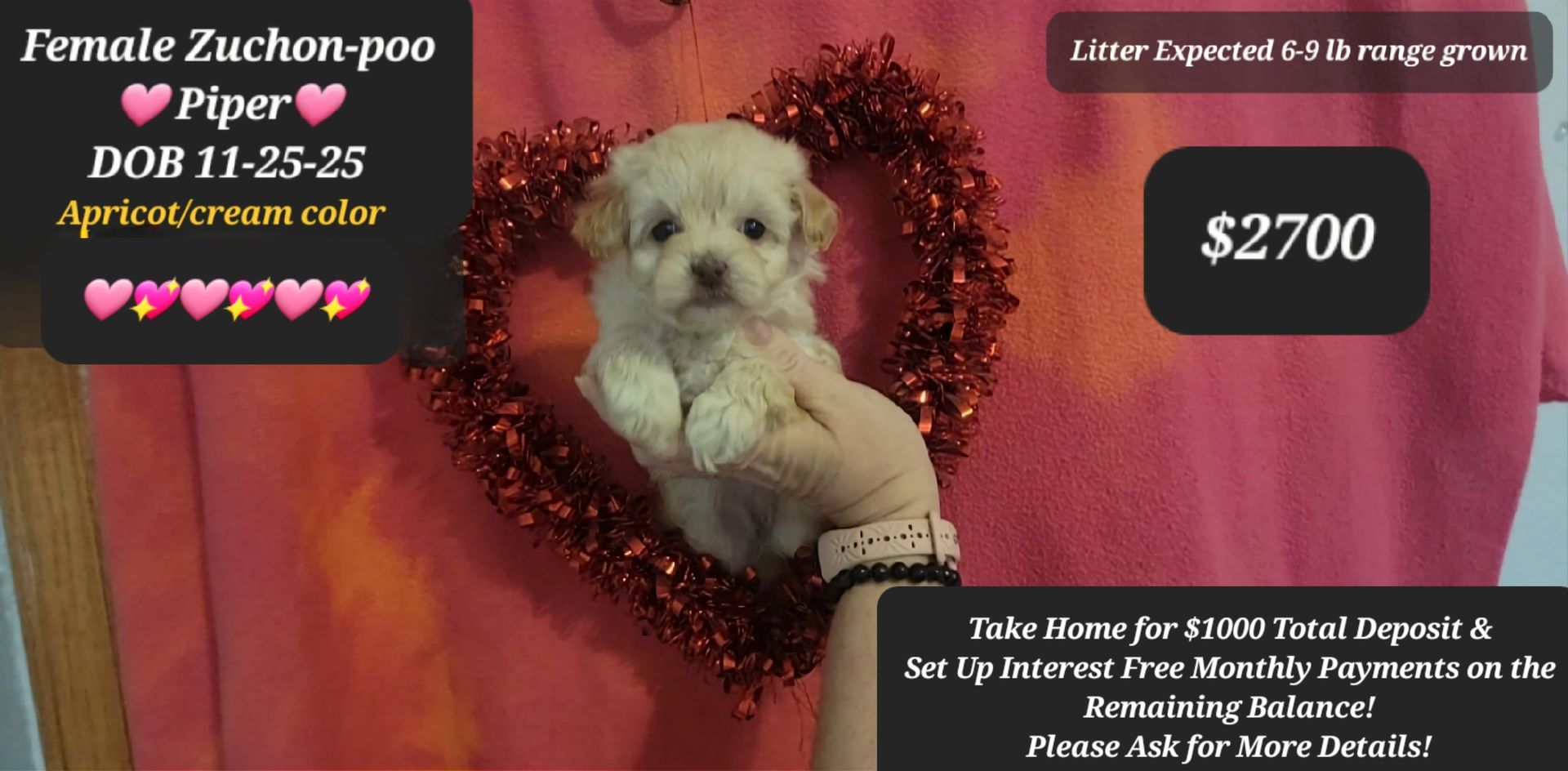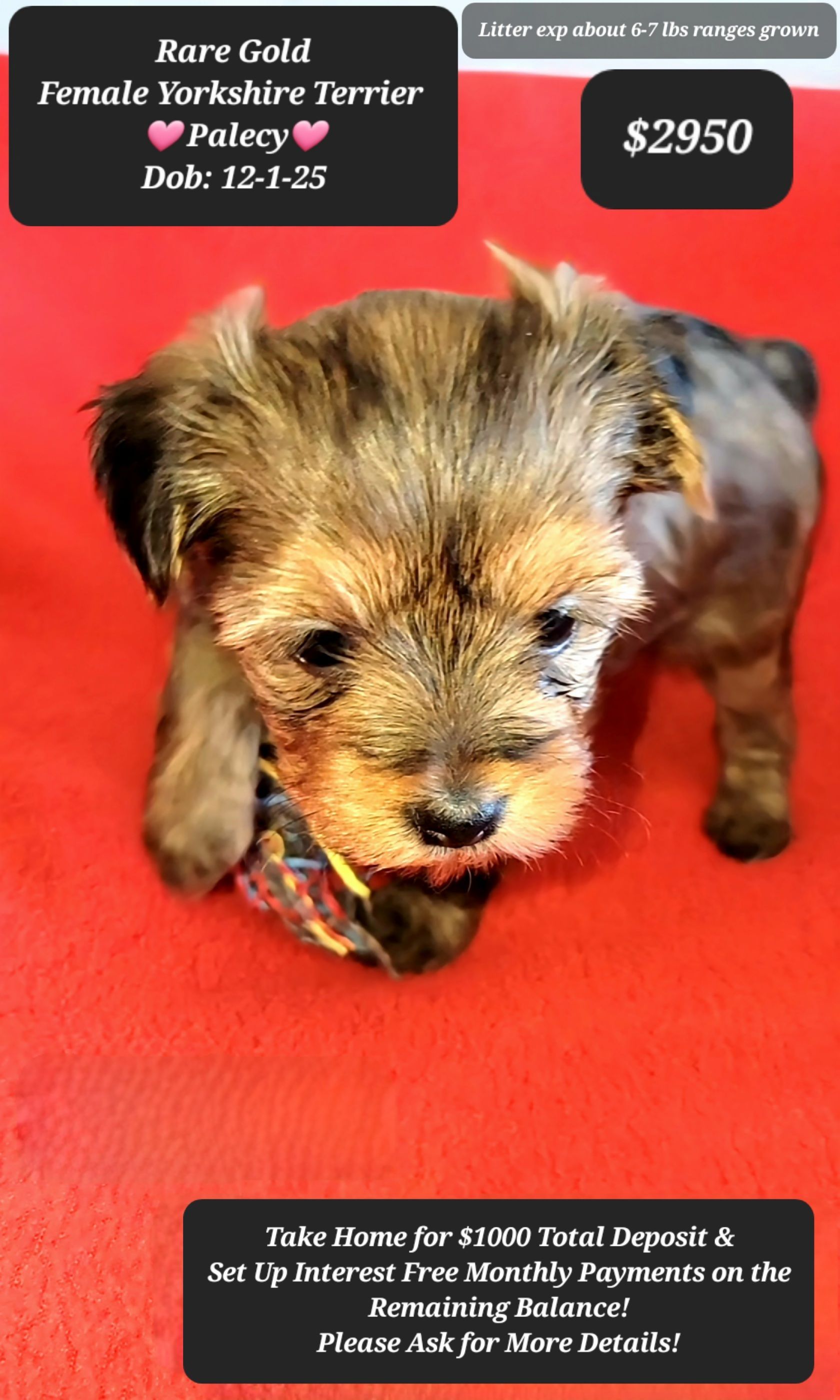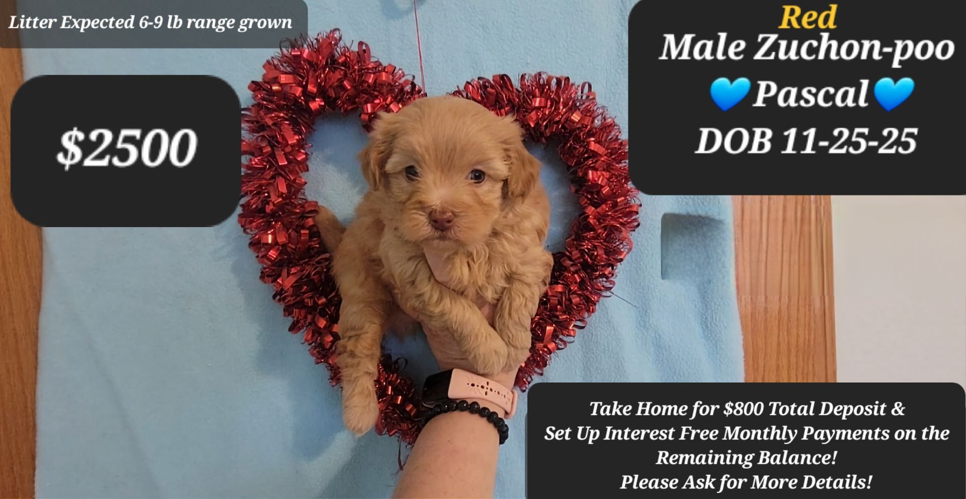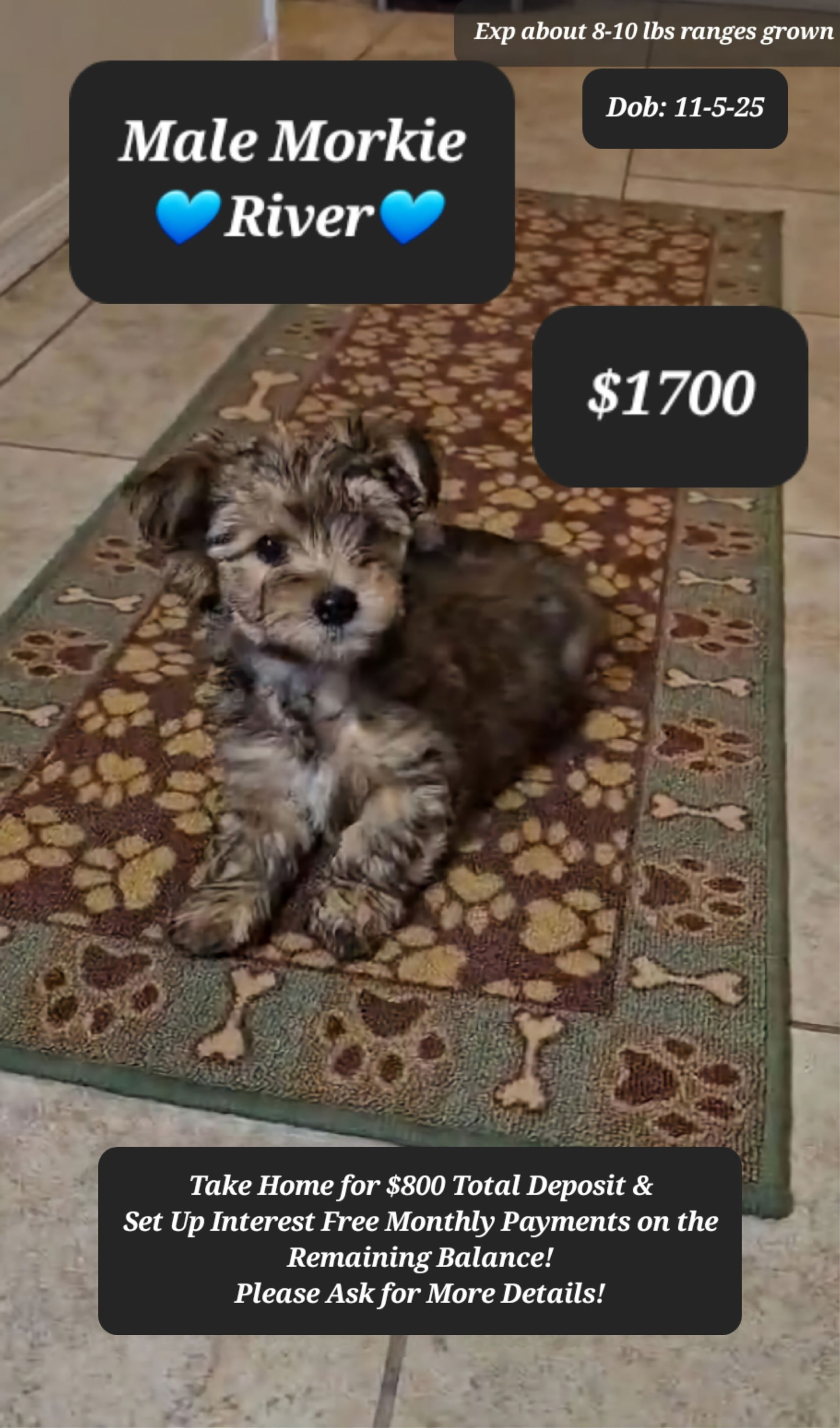 Call or text 520-481-7334 for current puppies, payment options, discounts, interest free payment plans, etc.