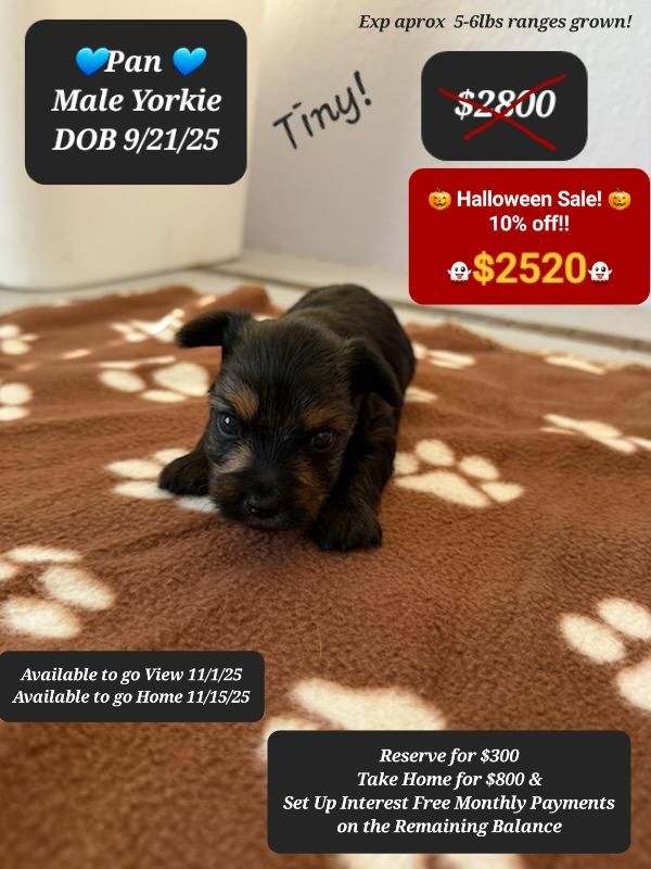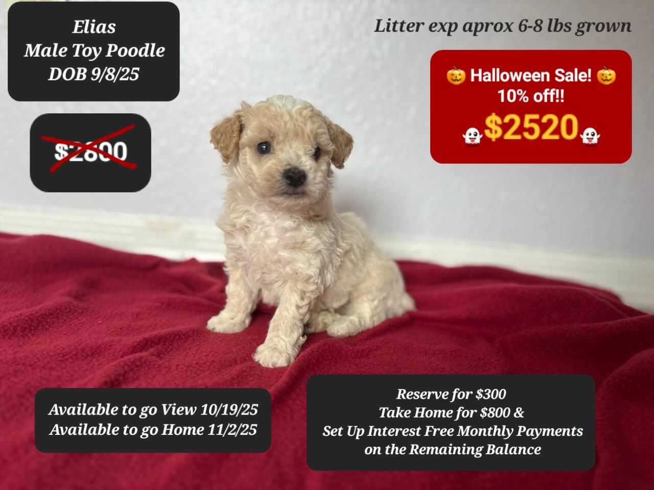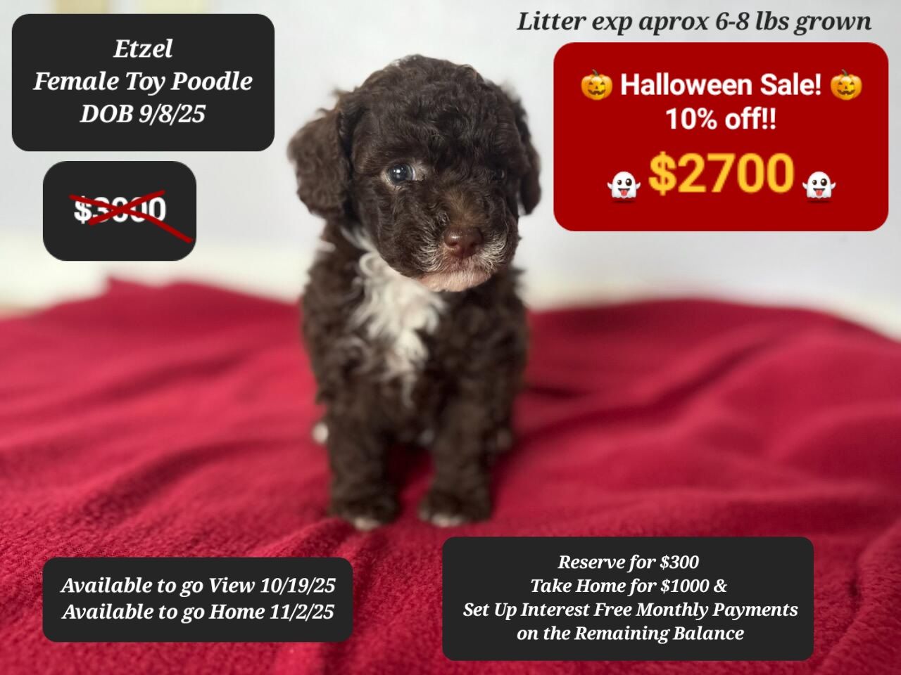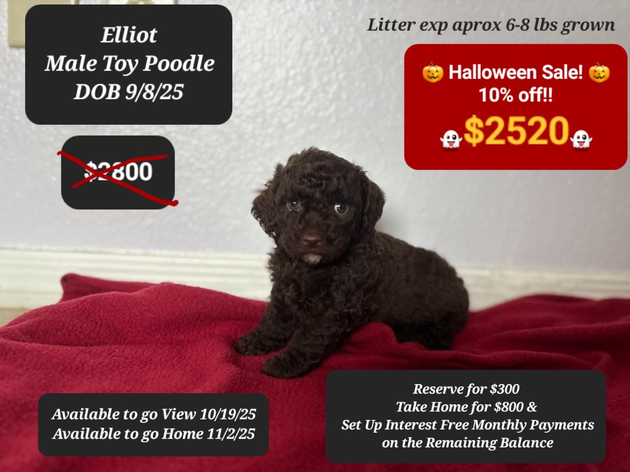 You can take a puppy home on deposit and set up interest free payments on the balance!